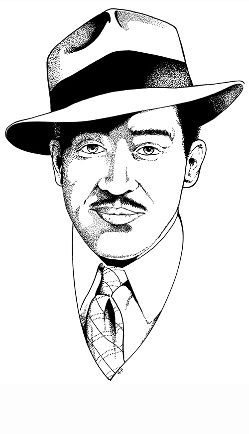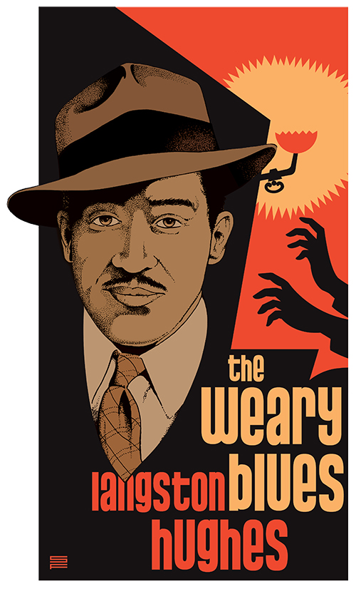Background art based on the original book cover design for The Weary Blues by Miguel Covarrubias, published in 1926.
